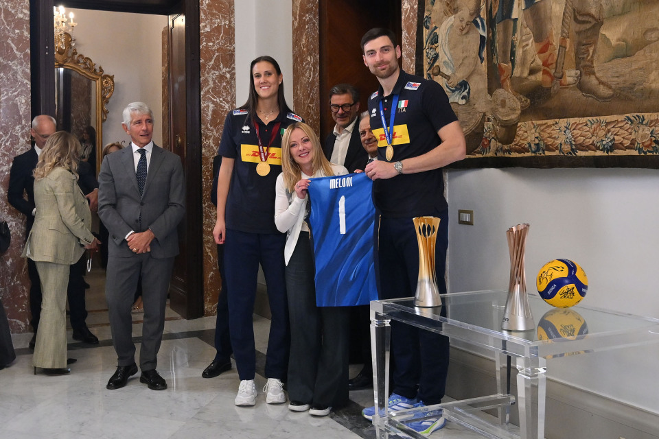 10月8日,在意大利奥委会和排协相关领导陪同下,男女排国家队代表先在奎里纳尔宫获得意大利总统马切拉塔接见。意大利男排国家队主教练德乔治、女排国家队主教练贝拉斯科、男排国家队副队长安扎尼、女排国家队队长达内西都在见面会上发言,安扎尼和达内西还作为球队代表向总统赠送了礼物。之后代表团一行又前往了意大利总理梅洛尼所在的基吉宫,与总理亲切会面。埃格努、德吉纳罗、安特罗波娃、法尔、米切莱托等冠军球员都参与了这次与国家领导人的会面。