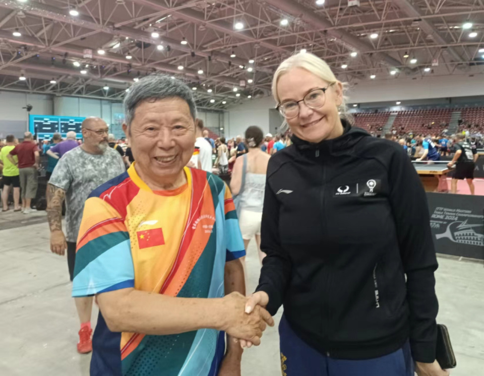 怎么会累呢?我在做自己热爱的事情。衣带渐宽终不悔,为“乒”消得人憔悴。球拍伴我八十年,充实了我的老年生活,结交了国内外球友,也给我带来了健康和快乐。